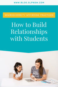How to Build Relationships with Students September 30, 2021 by Marisha Leave a Comment This is a guest blog post by Monica, a school-based SLP, all about how to use neurodiversity-affirming practices to build relationships with students!