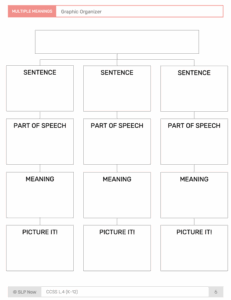 We have blank graphic organizers in our skill pack for multiple meaning words. For our books and articles, we've identified multiple meaning words in the text. For each word, we give three sentences with the target word in it, and then the students find the word, work through the graphic organizer to identify the part of speech, the meaning, and draw a picture to help with imagery. That type of graphic organizer can be really helpful. One of the strategies that has helped my students the most is helping them understand how parts of speech work.